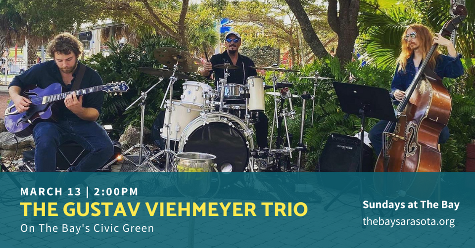 Featured Program: Sundays at The Bay with The Gustav Viehmeyer Trio Sunday, March 13, 2 - 3:00pm (Tomorrow!) Bring your lawn chair and join us at The Bay’s Civic Green every Sunday at 2pm to experience a new local performer! This week's performance features The Gustav Viehmeyer Trio, an all-star trio of international jazz musicians playing guitar, upright bass and drums. Learn more. | |